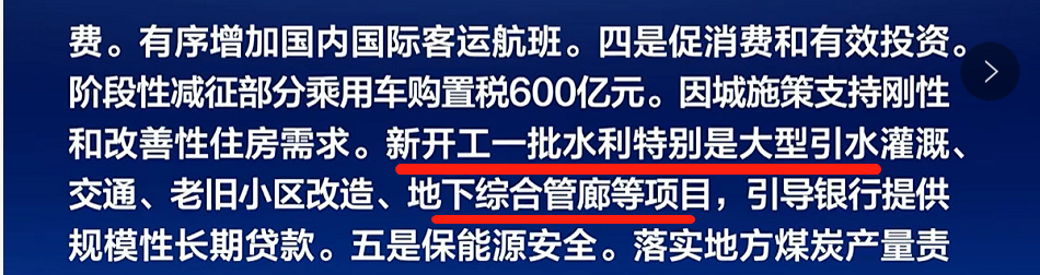 近日,央視新聞消息報(bào)道,國務(wù)院常務(wù)會議日前召開,進(jìn)一步部署穩(wěn)經(jīng)濟(jì)一攬子措施,努力推動經(jīng)濟(jì)回歸正常軌道、確保運(yùn)行在合理區(qū)間。會議決定,實(shí)施6方面33項(xiàng)措施。其中包括,新開工一批水利特別是大型引水灌溉、交通、老舊小區(qū)改造、地下綜合管廊等項(xiàng)目,引導(dǎo)銀行提供規(guī)模性長期貸款。