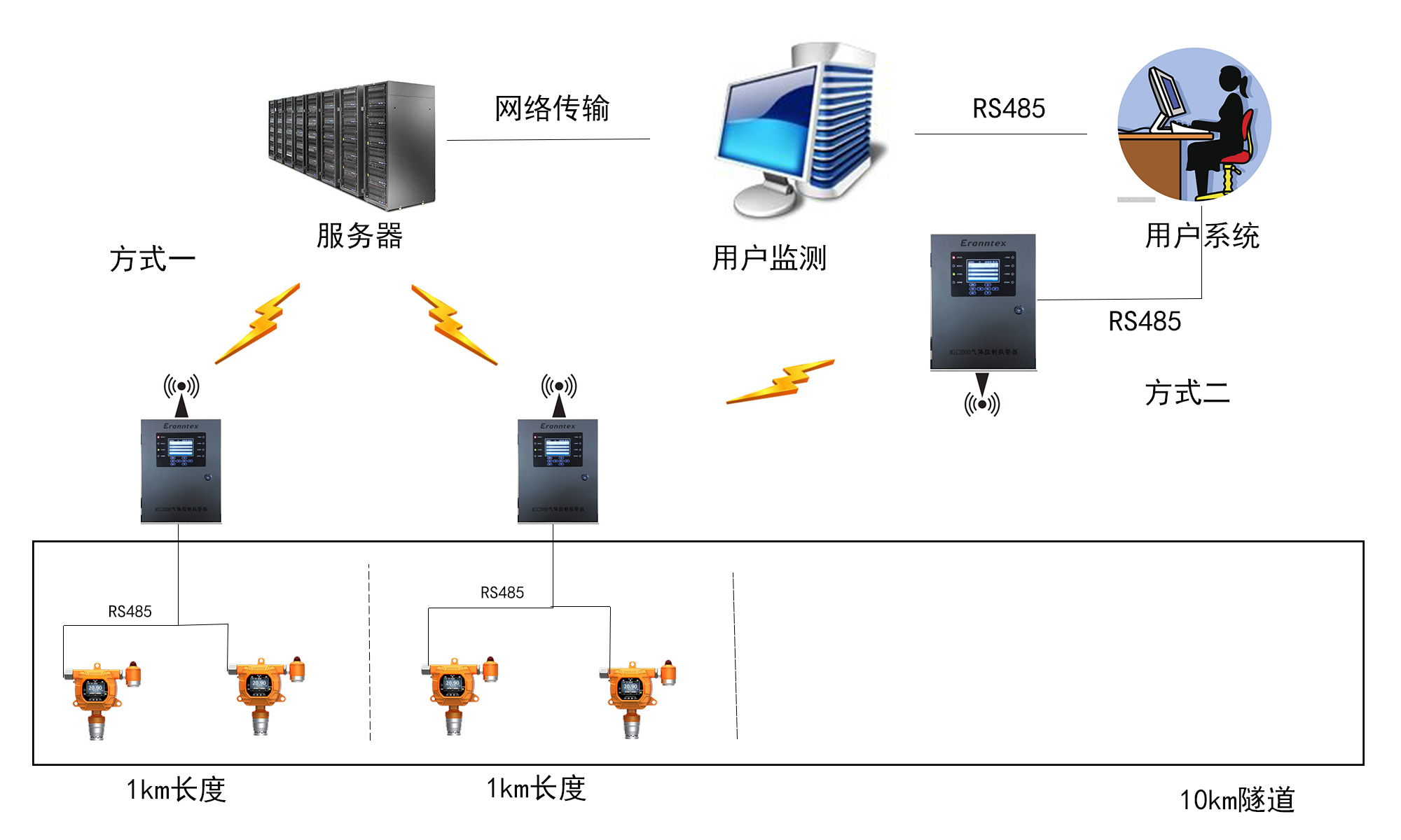 我公司國內(nèi)首創(chuàng)在線復(fù)合式氣體檢測儀,可通過一臺儀器同時檢測CH4,CO,O2,H2S,CO2,溫濕度等,并可兼容有線和無線傳輸方式。